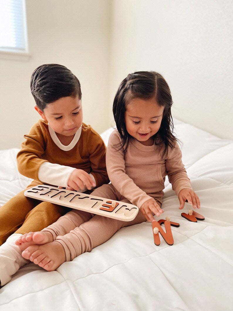 The wooden name puzzle is a fun and effective way to teach your kids letters, colors, shapes, and…their unique names! Puzzle with pegs will save the day for parents looking to both entertain and teach the little ones. Made of non-toxic and durable materials, these Montessori toys are safe for little delicate hands. Besides, we produce each puzzle with smooth edges to ensure our little clients won't get hurt.