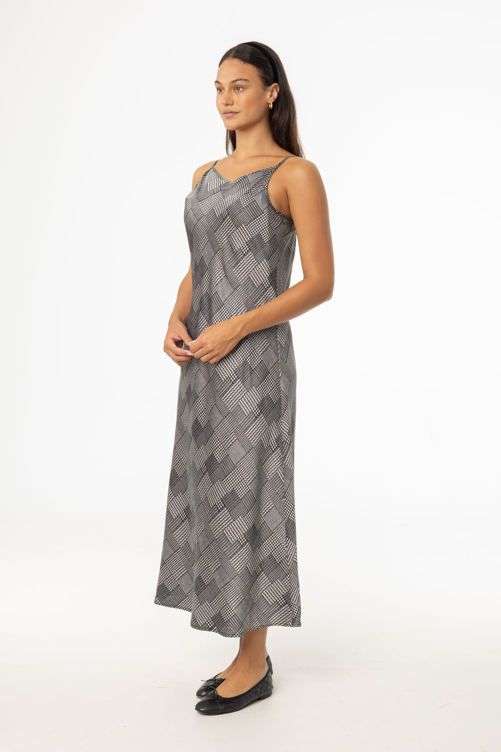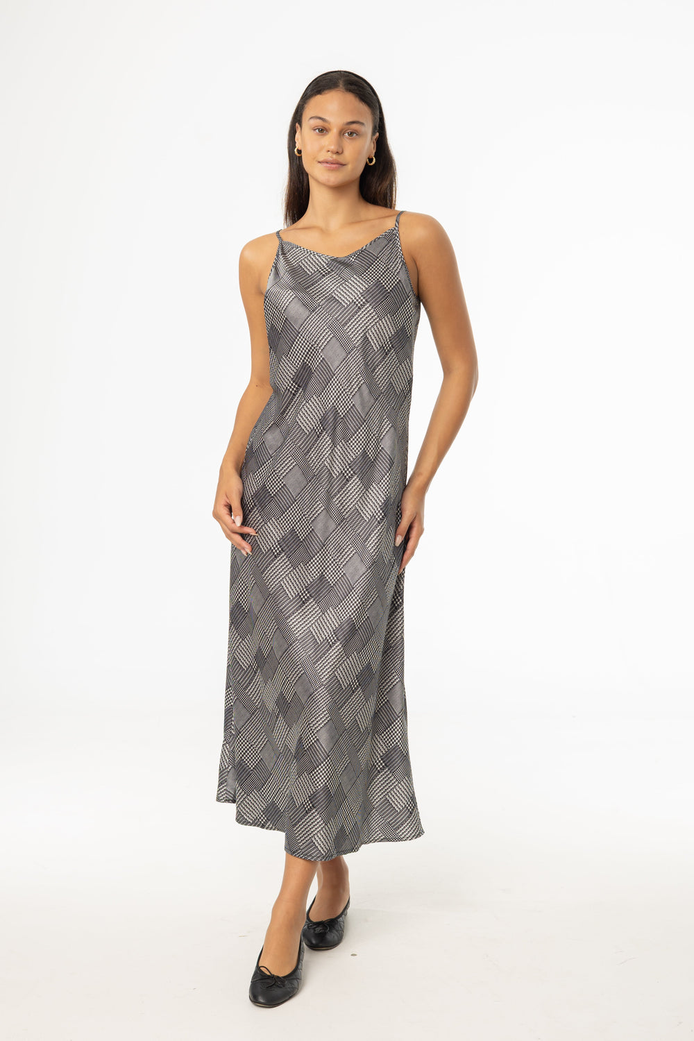 This houndstooth slip dress has clean lines that flatter without feeling overdone. The print adds edge, while the cut keeps it minimal and sleek. Layer it over a turtleneck or under a cardigan for a styled-up look. Or wear it solo with boots when you want simple but striking.