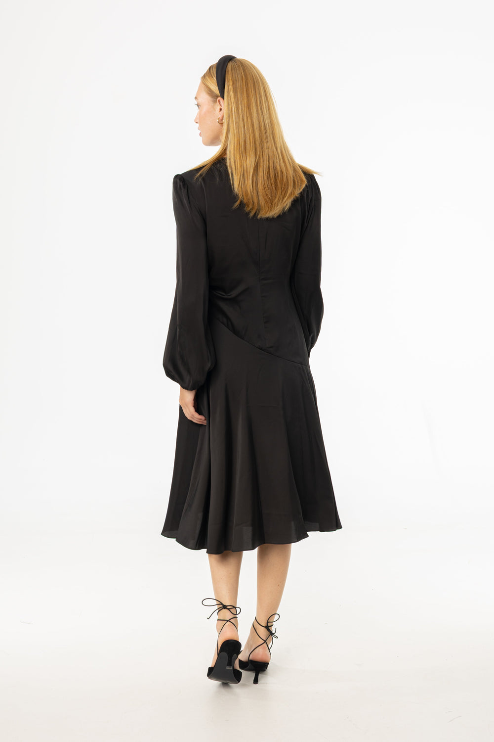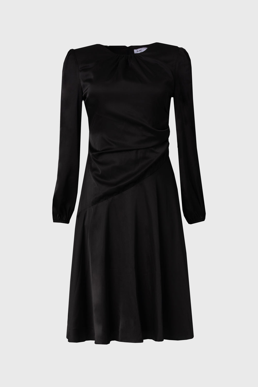 This side-draped style is sharp yet feminine, balancing structure with graceful movement. Pair it with gold earrings and sleek pumps for a dinner date, or heels for a night out. The subtle shoulder pads give just enough strength without losing elegance. A season’s must-have for nights when you want confidence wrapped in black.