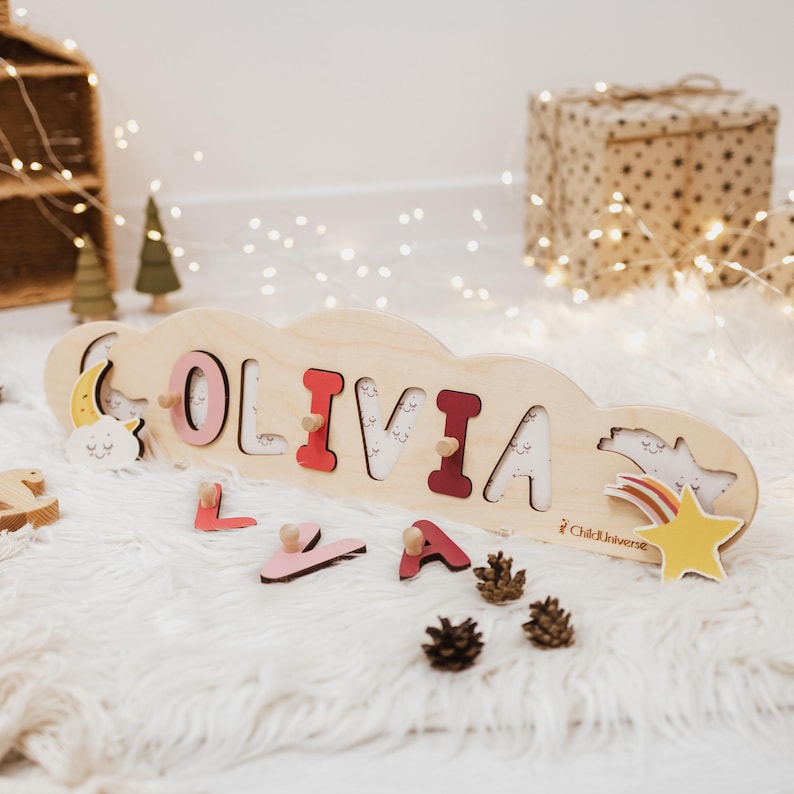 Put our name puzzle under a Christmas tree and admire the little ones opening their presents in an excited mood!